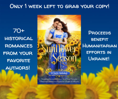 There’s only one week left to grab your copy of Sunflower Season – an anthology of 70+ historical romance stories that benefit humanitarian charities in Ukraine! We’ve made a good run after Amazon’s rough start for us and thanks to those who have gotten their copy!
