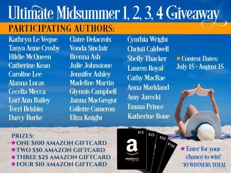 I’m hooked on another “Midsummer” event! Still celebrating the release of my #MidsummerKnights novella – An Outlaw’s Honor – and now am part of a Midsummer Giveaway —
