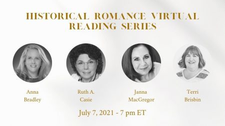 But, if like me, you’re anxious to hear more, please join authors Anna Bradley, Ruth Casie, Janna MacGregor and me! tomorrow night – Tuesday, July 7, 2021 at 7pm for a live chat. We’ll be reading a bit from our newest (or upcoming) releases and answering questions and chatting about the event live via YouTube…