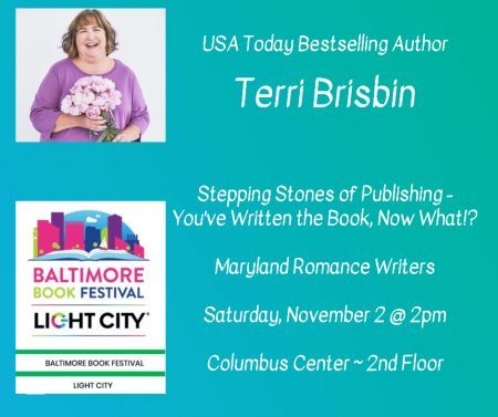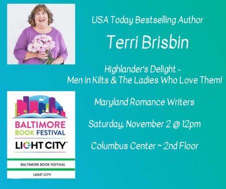 I am so excited that I’ll be part of the Maryland Romance Writers part of the HUGE Baltimore Book Festival next weekend! There are three days of panels about writing romance, writing, publishing, research, etc – basically anything about romance novels. I’ll be on four panels with some of my favorite authors so it will be fun for me. There’s also a bookstore handling sales and signing of a couple of my books if anyone needs/wants one…or two… LOL!