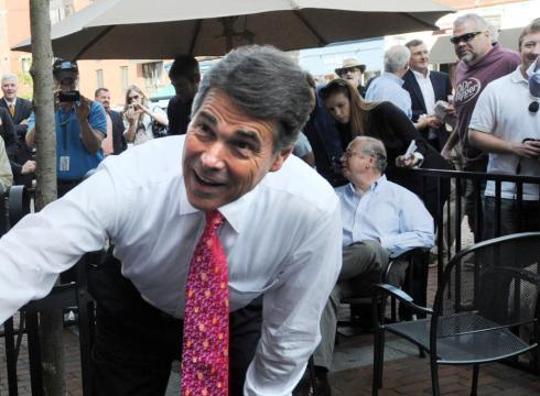 In a rare moment of public honesty, Rick Perry assumes the position he takes when raising money from corporate donors.