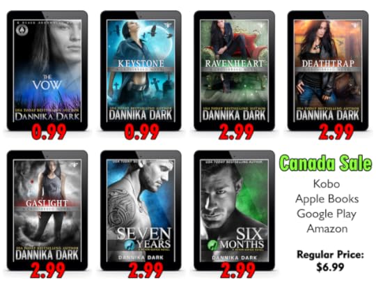 Select books have been discounted on Canadian store sites. Regular prices are $6.99. KEYSTONE, THE VOW, and SEVEN YEARS are both series starters. Scroll down for all the links!