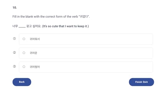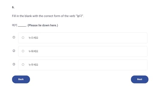 What can you achieve through this course?Learn how irregular verbs are conjugated when combined with various verb endingsLearn accurate pronunciation of each word and example sentencePractice speaking by listening and repeating after Kyung-hwaPractice 존댓말(formal language) and 반말(casual language)Sample lesson #gap-1033881670 { padding-top: 30px;} Review Quiz