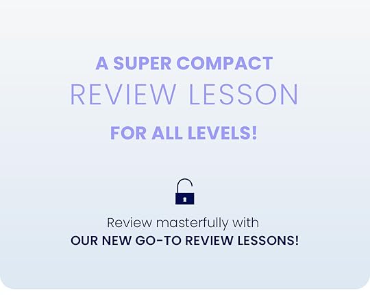 The main ideas of all 30 levels are squeezed into one compact lesson to make your run-of-the-mill review sessions more efficient and enjoyable.