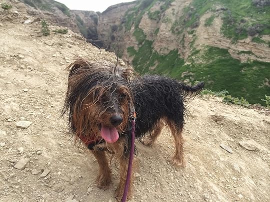 Baby steps. You just take one baby step at a time and once you have strung all those baby steps together, guess what, you are at the bottom and sprinting toward the beach with tears of joy and relief springing from your eyes. And ready to do it again. With your dog.