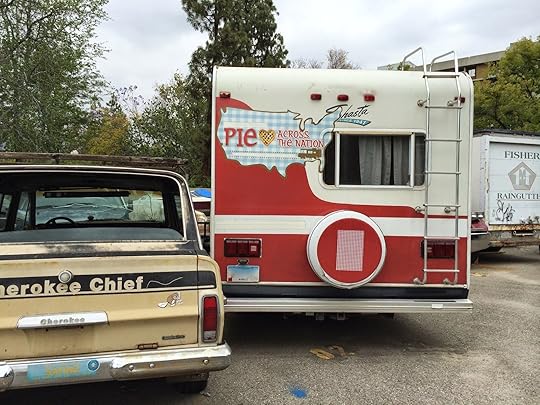beauty queen next to all the other vehicles.When we arrived at the parking lot I spotted it right away. The “Pie Across the Nation” decals made The Beast stand out like a sophisticated beauty among the derelict cars and trucks. My heart ached a little, my guilt flared. Why had I been so anxious to be rid of this sweet house on wheels? It had carried me far, and safely. It was an important part of my life.