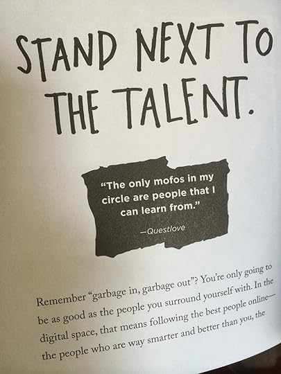 A page from "Steal Like an Artist."In "Steal Like an Artist" I loved Kleon's suggestions and encouragement to emulate those whose work you admire. And if possible, hang out with them. Like the page from his book (pictured above) says, "Stand next to the talent." It reminded me of my dad's best and wisest advice from my childhood: "Surround yourself with positive people." My dad also said, "The surest way to unhappiness is to compare yourself to others." So yeah, stand next to the talent but don't compare yourself to them. Don't be them, be yourself.