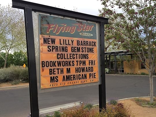 That next stop was Albuquerque, New Mexico. I’ve never been to Albuquerque and all I knew about it was that we should at least see Old Town. So we took the designated exit off of I-40, drove a few blocks, and parked on a quiet section of Rio Grande Street where it dead-ends at a golf course. The beauty of traveling in an RV is that you are self-contained. You can run your interior lights off a battery, your refrigerator off propane, and you have your bed in the back, so you can park anywhere (where it’s allowed) and sleep for the night. We had pulled up across from a bed & breakfast and in front of a tidy brick house where a man was standing out in his driveway. Rather safe than sorry, I approached the man and asked if it was okay to park there overnight. After he said yes, I said, “Oh, and do you know where we can get a good margarita?”My dogs were standing there with me and his dog was inside barking so he said, “Let me have my wife bring our dog out.” That’s how we met Bob, Dorothy, and their dog Weston. Dorothy came out to the RV the next morning and asked if we needed anything, if we needed to use the bathroom, or needed her to direct us to the TV station where I was going to talk about my book. She was so nice, so friendly, so much fun to talk to, we brought her with us to the TV station, had lunch with her afterward (she knew of a good place called Flying Star Café — and it was good!), walked the dogs with her in the afternoon, brought her with us to the evening bookstore event I did at Bookworks, and had a post-event drink with her before calling it a day. It felt like we had known her forever and that she was an integral part of Team Pie. We wanted to kidnap her and bring her with us.