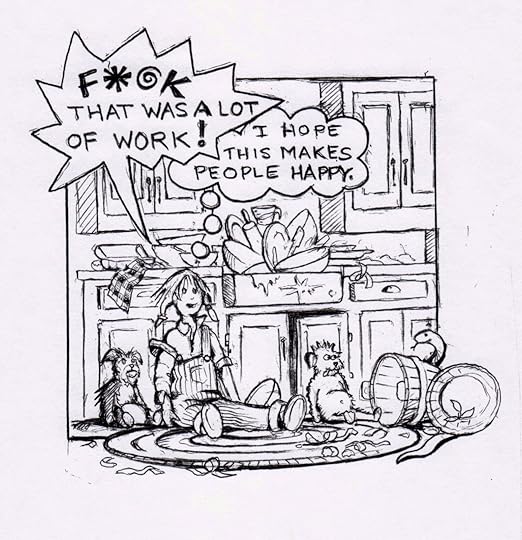 Artists give the BEST birthday presents ever. This cartoon strip is by the brilliantly talented Dave Pittman. He captured every single detail so perfectly -- down to Daisy's hair, the Mini Cooper loaded to the max, Jack hogging the front seat, The Binoculars, the snake (he's there twice, can you find him?), my "creative use of language," and more. I'm hoping I don't have to wait for another birthday for the next installment. Seriously, drawing a picture and giving it as a gift brings even more happiness than a homemade pie! And it lasts a lot longer. Thank you from the bottom of my heart, Dave.
