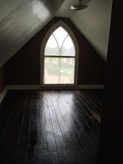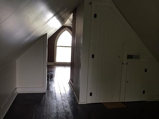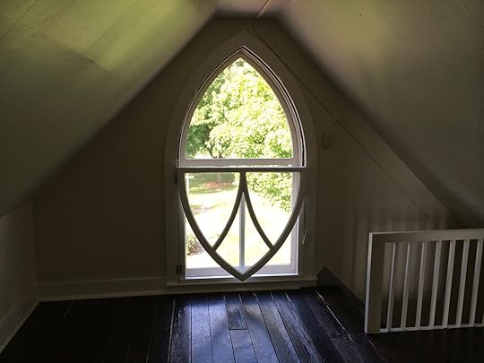 The Gothic window on the back side of the house swings down and sideways.