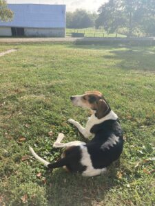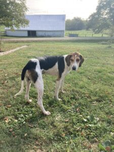 A stray dog showed up on our farm a few weeks ago. At first, he only came around at night, lurking in the shadows as we sat around the fire pit after supper. He was tricolored and as tall and lanky as a colt. I did an internet search and discovered he was a Treeing Walker Coonhound. He was young and puppy-like, probably about a year old, and judging by his aversion to being touched, he had likely been living on his own for a long time. Was he lost? Or was he dumped in a field by some heartless person who couldn’t be bothered with him?