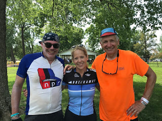 L to R: Scott Horsley, me, Les CookI caught up with Team NPR -- the acronym can stand for National Public Radio or "No Pie Refused," depending on how you choose to see it -- and rode a few days with economics reporter Scott Horsley and business editor Les Cook. I thought I was in pretty good shape, but oh man, I had a hard time keeping up with these dudes. I thought these guys had desk jobs! But they were motivated by -- and fueled by -- pie. (Scott told me that he first read about RAGBRAI in a Wall Street Journal article that said it's the only long-distance bike ride where you'll gain weight. He's been doing the ride every year since.)