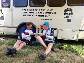 I hadn't planned on riding this year, but once the event got underway and I started seeing all the pictures and the social media posts of all those people smiling and laughing and exercising -- and yes, eating all that pie -- I developed a severe case of FOMO (fear of missing out) so I hitched a ride to Bloomfield and joined in the sea of bicycles as it flowed eastward.