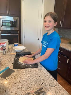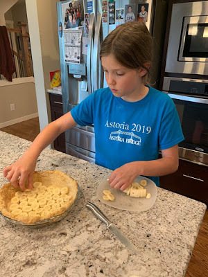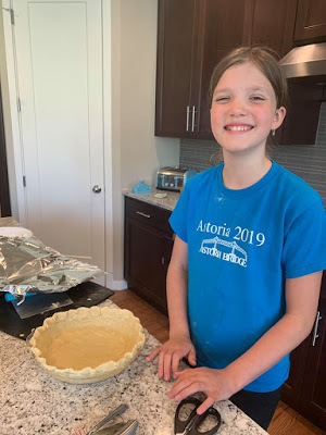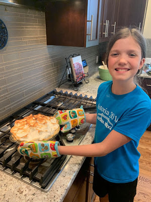 My friend Dixie Wilson in Seattle has three very creative kids who, while cooped up at home, have proven just how industrious they can be. They set up a domino line that stretched the full length of the house. They wrote their own sermons for their stay-at-home Sunday church services. And they made pie! Here is her 11-year-old daughter Madison making a banana cream pie. The pics came in just minutes after I posted the video and I was so sorry not to include them. But I realized my blog was a way to showcase them, and here they are....