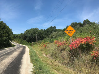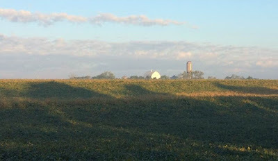 This happened three days in a row. But each day, half way through my ride, lulled by being in motion, I stopped thinking and started observing the things around me. Soybean fields turning from green to yellow. Butterflies fluttering above the roadside clover. Pristine red barns. A farmer on his combine harvesting his corn in artistic rows. Horses grazing in a pasture. A hawk silhouetted against the sun. Maple leaves rustling in the breeze.