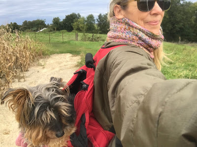Jack is blind, but he still likes to go for walks --even when I have to carry him in the backpack.