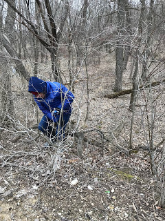 During our first hike we picked up as many cans as we could carry, stuffing them in our pockets if they weren’t too dirty and carrying them in our gloved hands if they were. Thinking the litter might just be a one-off we didn’t bring bags with us on our second hike. But as the snow came and went, more and more cans appeared, like a trail of bread crumbs left behind in the woods, discarded as if aluminum were biodegradable and would magically disappear. We were so compelled to pick up the litter we took turns fighting our way through the undergrowth, getting scratched and tangled up in thorny branches for the sake of Keeping America Beautiful. I sacrificed my fleece jacket to the cause, improvising a garbage bag by zipping it up and tying off the sleeves, filling it with so much trash it looked like a Macy’s parade balloon.