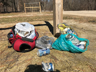 My friends and I may be hiking, not jogging, but we are definitely burning calories and doing a lot of squatting. We are also doing a lot of grumbling. With each beer can added to the bag we vow we’re going to write to Anheuser-Busch and suggest they run an ad campaign instructing their customers to dispose of their cans properly. Their commercials might also advise that littering is a misdemeanor, and those guilty of the offense—should they be caught out there, say, in the far reaches of a state park—can be fined up to $625 per occurrence in Iowa, even more in other states. What I don’t understand is why risk a fine when you can get your five-cent deposit back on every can? How hard is it to carry your cans to a recycling or trash bin? (Shimek State Forest offers them in several convenient locations around the park.) But what’s most confusing is why anyone would sully the very land they come to enjoy for its purity.