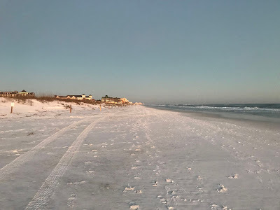 This isn't snow, but it felt like it! It's a white sugar sand in Navarre Beach, Florida, and the wind chill was about 28 degrees when I took this photo.
