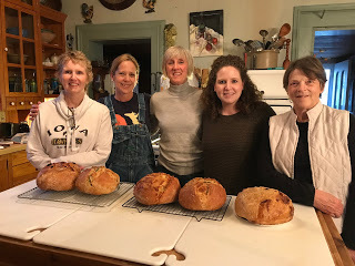 Mixing ingredients in a variety of vessels.Betty is tall and slender with strong cheekbones and waist-length hair twisted up into a knot at the nape of her neck. Dressed in a baggy white blouse and even baggier khakis, her demeanor was as easy and relaxed as her clothes. She greeted us with her warmth and her smile. “Us” was five participants, all women, all eager to learn this new (ancient) skill.I always talk about how pie originated in Roman times, how the crust was used to preserve and transport meat. But bread has been around even longer than pie—a lot longer, like even before the invention of language or electricity, before civilization. Prehistoric mankind started eating bread 30,000 years ago! (You think it’s hard imagining a 135-year-old iron bridge made for covered wagon river crossings, try wrapping your head around that number!) And now, here we were, in the Dark Year of 2018, the era of divisive politics, tribalism and social media trolls, questionable news sources and reality TV and talk of building 20 billion dollar border walls: five women (of indeterminate and undisclosed political leanings) gathered together to make— and—break bread.