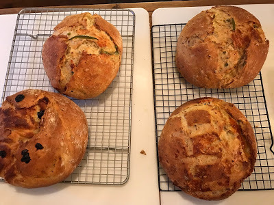 - About extra ingredients added to create varieties of breads. (This is where it gets fun—olives, raisins, cinnamon, sundried tomatoes, cheese, garlic, rosemary, the possibilities are endless. Kind of like how you can put “just about anything” in a pie crust, so it goes with bread, though I have yet to test the limitations of this.)