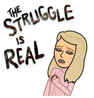I texted this bitmoji to my sister (she is the one who introduced me to this amusing app) with the message, "My writing totally sucks."