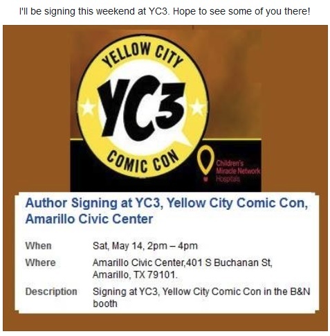 I'm signing this weekend in Amarillo, and the local B&N is taking out-of-city and out-of-state orders for signed books.