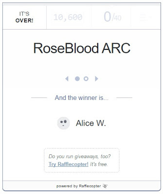 Okay, first, the winner of the RoseBlood cover reveal ARC + poster giveaway has just been announced via the rafflecopter.