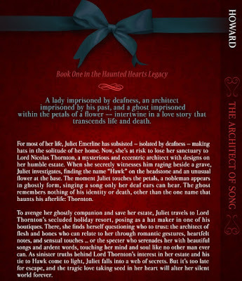 Here's a sneak peek at part of the back cover and spine for my upcoming gothic love story, The Architect of Song.