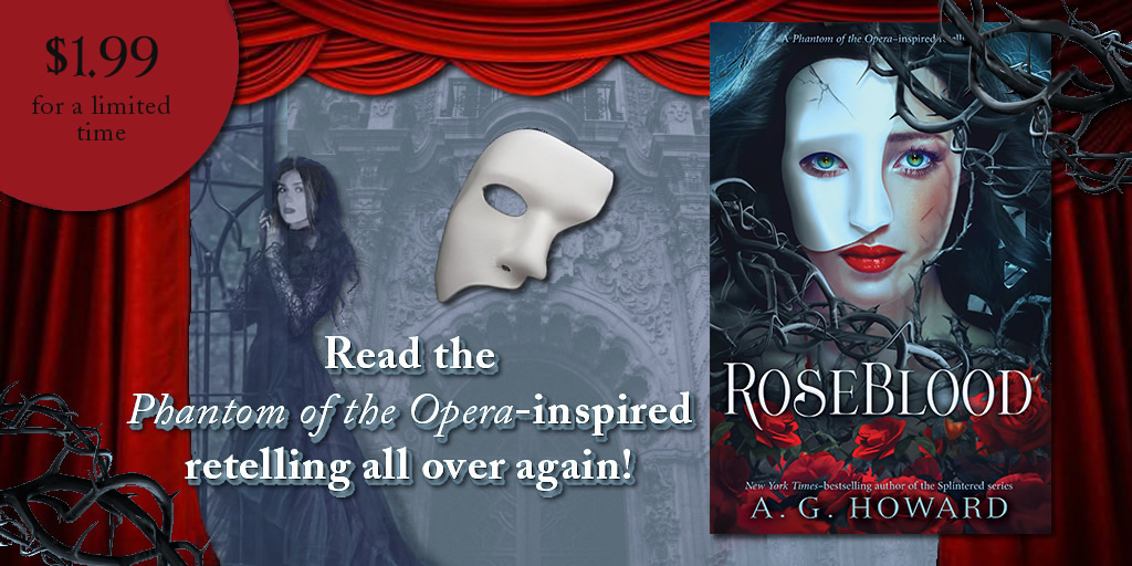 If you're like me and looking for an eerie and romantic story, or if you're in the mood for snuggling up with a past favorite, my #1 NYT bestselling Phantom of the Opera spinoff, RoseBlood, is on sale now for $1.99. NOTE: This is a very special version, because included is a one chapter sneak peek into my upcoming gothic fairytale Stain!