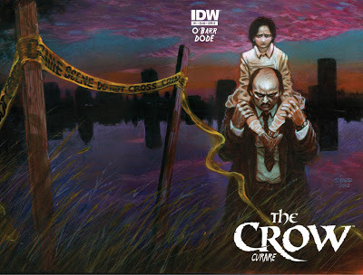 After Skinning The Wolves ended James O’Barr’s long absence from the franchise he is back with a new Crow tale entitled Curare. And the high standard he set with Skinning of the Wolves is easily met in this tale of anguish and pain.The narrative centers around Detective Salk, a retired police detective whose inability to solve a sexual assault and murder of a small child haunts him, making him unable to live his life in anyway. This book is just eerie, the artwork by Antoine Dodé is surreal, pulling the reader into the mind of a haunted man. The coloring is amazing, and defies nearly every comic book trope. The story is brutal and jarring, without ever being overly graphic. This is by far one of the creepiest comics I have ever read. The illustrations by Antoine Dodé are not very explicit in the harrowing violence, yet he conveys such malice and violence this will be a hard book to stomach for most people.