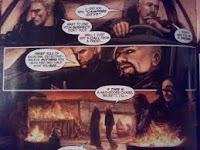 It sounds cool doesn’t it, but it’s not. While the artwork by Leonardo Manco is a gorgeous mix of comic sensibilities and painting it doesn’t mask the story’s poor pacing thinly drawn characters, bland dialogue, or uninspired plot progression. Jack Duran is a thinly drawn tough cop cliché and Beckett is boring from his introduction in a morning after sequence with a woman who he leaves without talking to, even as she tries to engage him, and walks to a church and is revealed to be a priest. This sequence sums up the book nicely, failed attempts to shock the audience and nothing else. Much of this revolves around nude women, who are often so for NO apparent reason. (Really she takes her shirt off to make a phone call?)