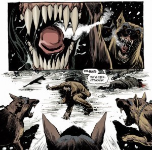 The Crow works best an agent of righteous chaos in a corrupt and vile setting. In this regard placing the events in a concentration camp is a good call. It is difficult to refer to the character as heroic, because saving others is a byproduct of his actions, and he is already dead. In Skinning the Wolves there a great deal of foreshadowing, setting up the Nazi leader that will be the antagonist of The Crow. It is too early to tell if all the elements will lead to a satisfactory pay off, however O’Barr and Terry are off to a strong start.