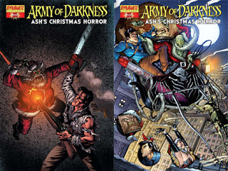 Army of Darkness Ash's Christmas Horror is a one shot with two stories following Ash through two Christmases at the S-Mart. The first story is a simple melee tale of Deadite smashing action. The second story owes a great deal to A Christmas Carol and Ash hallucinates his way through the iconic TV specials of Christmas to reaffirm his place as the chosen one. The strength of this one shot is the brisk pacing. The writing works and the art while never leaving you in awe is solid. If you are a fan of any of the Army of Darkness comics you'll dig this.