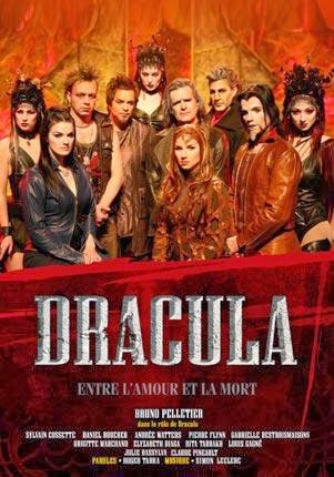 Dracula in French? And Canadian French to boot? And with songs! Yes, all that and more is available to those who enjoy a delightful shiver on seeing a bat’s silhouette on the moon, while nights are chill and days may bring more freezing rain or snow. And it’s on DVD, “inspiré du roman de Bram Stoker, le spectacle musical Dracula: Entre L’Amour et La Mort.” Yes, the musical version of Dracula -- in French. Actually produced in Quebec where it ran from January 13 to December 16 2006 (with the DVD version filmed in November that year according to the credits, although the DVD itself didn’t come out until 2008), it has since been performed as well in France and elsewhere. Translated as “Dracula: Between Love and Death,” it was created by Bruno Pelletier (who also plays the part of Dracula) with music by Simon Leclerc and lyrics by Roger Tabra.