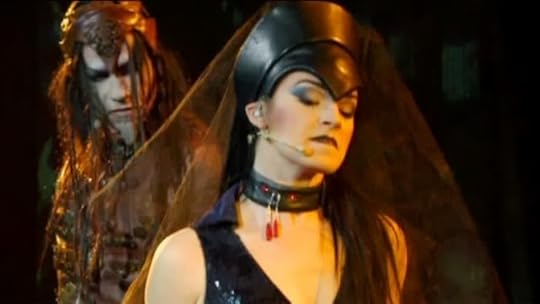 But there is a down side, it’s only available in French (and québécois to boot, as well as a few lines in Ukrainian) with -- at least in the only version of it I’ve been able to find -- no English subtitles, and as for me the title is about as far as my language skills are going take me. So what I’ll offer here may be not so much a review as an outline of differences between it and the plot of Bram Stoker’s novel, so one can follow it just enjoying the stagecraft and music. And I will say that, even without a translation, the music is great, the dancing and acting, the costumes and settings all great too. For me at least -- but then I like things like les trois vampiresses (a.k.a., in the movies, the “Brides of Dracula”) done up BDSM style with Medusa-like headdresses!