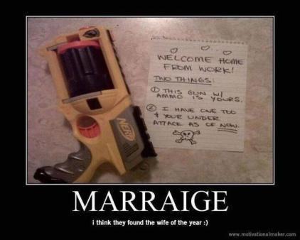 Its called being spontaneous. Nerf would be awesome. But I at least, would feel deeply freaked out if I found a note like this next to an actual weapon, modern or otherwise. That's more along the lines of a messy divorce.