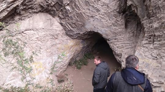 Вблизи пещера оказывается интереснее, чем при взгляде с дороги. Перед входом в нее образовались естественная арка и терраска с нависающим над ней скальным козырьком. Монументально! Кабы не вездесущие осквернители, что годами пакостили на арке и в пещере, она могла бы стать отличной натурой для исторического или фантастического кино. Какие-нибудь питекантропы или эльфы с луками смотрелись бы тут вполне органично.