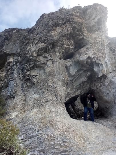 За Еландой дорога какое-то время идет в восточном направлении, и там мы обнаруживаем еще одну пещеру. На сей раз обычную, не окультуренную и без билетной кассы. Как и пещера шамана в Че-Чкыше, эта дырка тоже располагается высоковато, и к ней надо подниматься по крутой тропе. Так почему бы не сходить, тем более, что мы еще не устали и полны энергии.