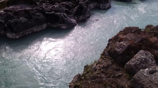На другом берегу останавливаемся и идем глядеть на реку с моста. Он не сплошной, а как бы решетчатый, что добавляет нам острых ощущений. Настил моста собран из двутавровых балок, в просветы между которыми видны речные буруны и водовороты. В отличие от мощного каркаса, перила, наоборот, кажутся слишком ненадежными. Облокачиваться на них, фотографируя реку, я не рискую.