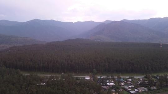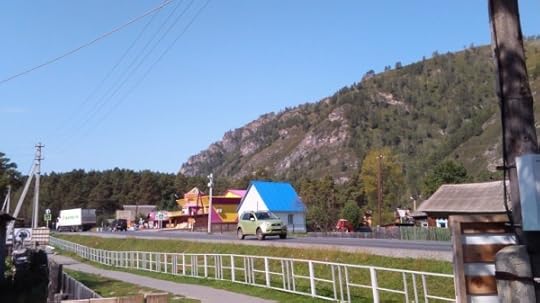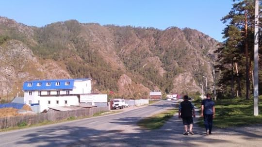 К счастью, живописные горы, а также Катунь отвлекают нас от чемальской архитектуры, рекламы и всего того, что хрустит у нас под ногами.