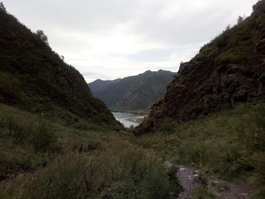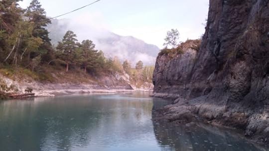 На самом деле утро не столь уж прекрасное. Верхушки гор затянуты туманом, воздух после ночного дождя пропитан сыростью, а по небу ходят тучи, того и гляди обещая пролить на нас новый дождь. И даже Катунь без солнца голубеет как-то неправильно, не сказать мрачно.