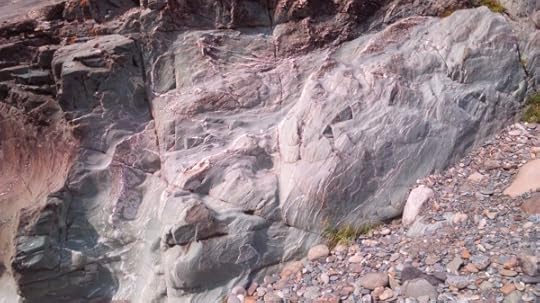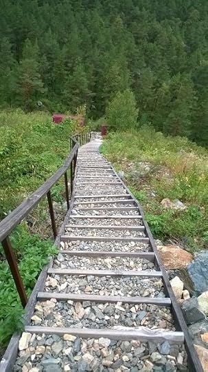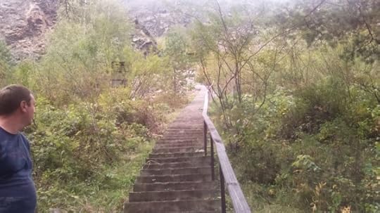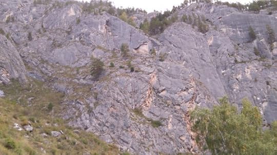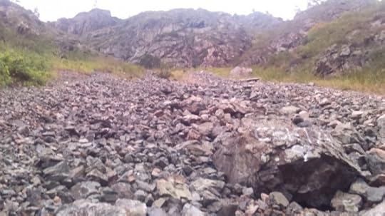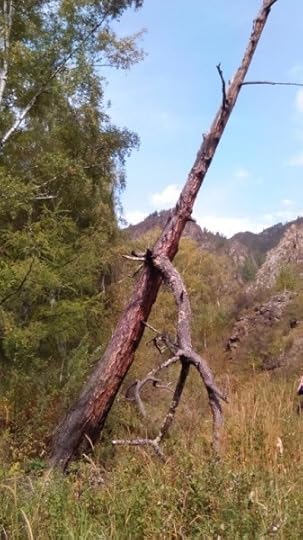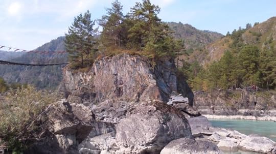 Этот берег заливной: широкий, каменистый, с торчащими повсюду скалами - от небольших и голых до огромных, величиной с трехэтажный дом, и заросших соснами. Между последними тоже был когда-то подвешен мост, но нынче он сломан; в 2014-м его повредило наводнение.