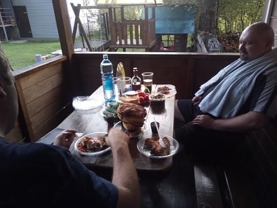 Возвращаемся в коттедж уже затемно. Ужинаем как обычно на террасе, хотя сегодня прохладно. Поэтому нас не тянет на пиво, и мы вновь симпатизируем коньяку. А он симпатизирует нам, аккумулируя в нас то скромное тепло, которым мы зарядились в бане.