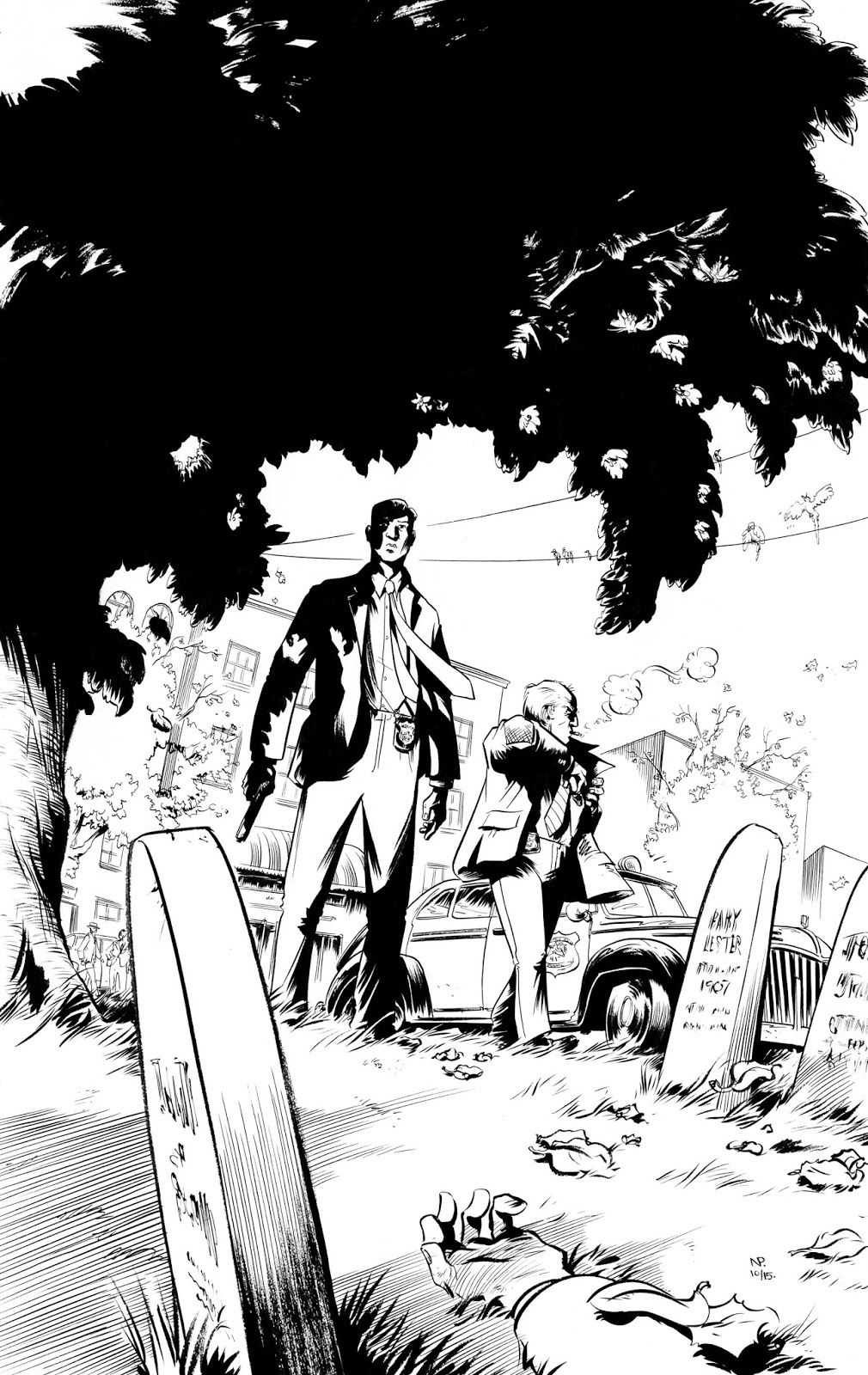 Dark Horse has officially announced Two Dead , a 10-issue series I'm doing with writer Van Jensen (The Flash, Green Lantern Corps, Pinocchio: Vampire Slayer), slated to debut August 2016! It's a trippy, bizarre psychological noir detective tale that's set in my hometown of Little Rock, Arkansas in 1947, based on true events.