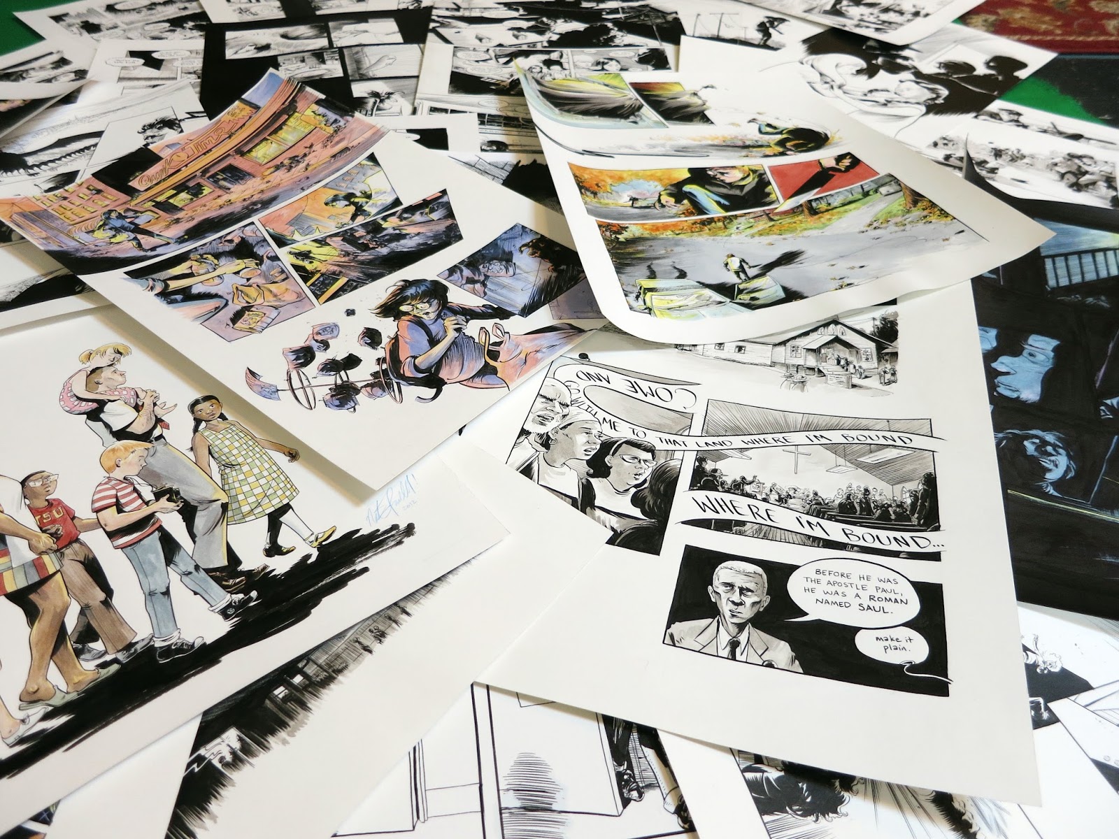This includes pages from SWALLOW ME WHOLE, ANY EMPIRE, WALKIE TALKIE/ SOUNDS OF YOUR NAME, PLEASE RELEASE/ YOU DON'T SAY, THE SILENCE OF OUR FRIENDS (w/ Mark Long & Jim Demonakos), THE YEAR OF THE BEASTS (w/ Cecil Castellucci), TWELVE REASONS TO DIE (w/ Ghostface Killah & Matthew Rosenberg), IN THE DARK (w/ Scott Snyder), THE LOST HERO (w/ Rick Riordan & Robert Venditti), SWEET TOOTH (w/ Jeff Lemire), and the only two pages from MARCH that will ever be available for sale in the forseeable future.