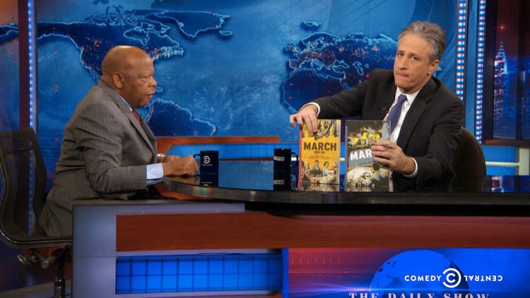 In case you missed it, Congressman and civil rights legend John Lewis, co-author of the March saga (written with Andrew Aydin, and drawn by me) had an amazing appearance on The Daily Show with Jon Stewart on March 9th. The entire episode was dedicated to Congressman Lewis and the 50th anniversary of the Selma marches, which served as an impetus for the landmark 1965 Voting Rights Act (recently gutted by the Supreme Court).