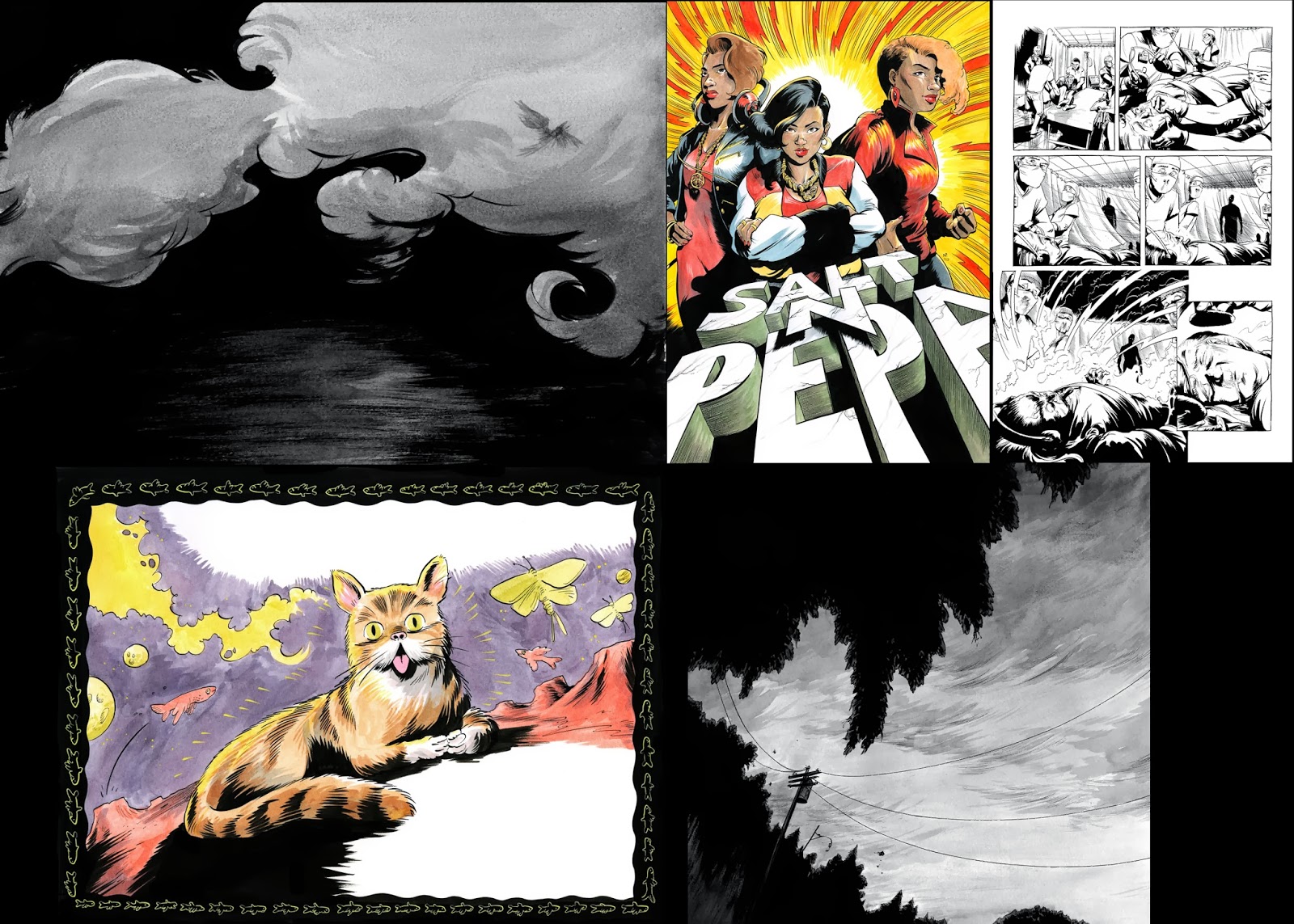 I've added five new originals to my Etsy store : illustrations from the Iron Tongue album just released on Neurot Recordings, the bookplate illustration from Lil Bub's Lil Book , a page from Ghostface Killah's comic Twelve Reasons To Die #2 , and my Salt-N-Pepa pinup from Ed Piskor's great Hip Hop Family Tree Vol. 1.