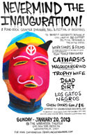 The last of next week’s Catharsis reunion shows will take place at the conclusion of a full day of performances, discussions and tabling in Washington, DC, the day before the Presidential Inauguration. This festival of resistance will offer a venue in which to envision a world without capitalism or hierarchy and to strategize about how to get there.