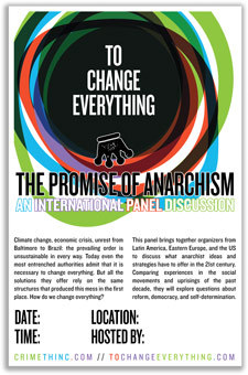 This Tuesday, our comrades are embarking on a two-month tour of the US, comprising fifty events in twenty-five states. Where our massive outreach project To Change Everything introduces anarchist ideas, on this tour anarchists from three continents will discuss their experiences acting on these ideas in a variety of struggles, movements, and uprisings.